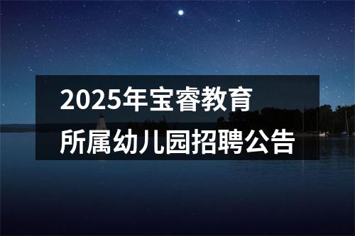 【2025年宝睿教育所属幼儿园招聘公告】相关岗位: