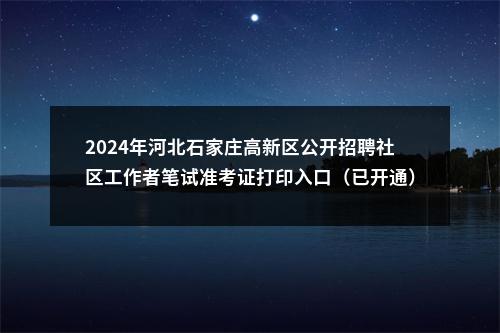 2024年河北石家庄高新区公开招聘社区工作者笔试准考证打印入口(已开通)以上信息节选于《2024年河北石家庄高新区公开招聘社区工作者30名公告》
