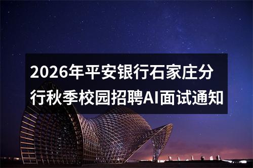 声明:专注 2026年平安银行石家庄分行秋季校园招聘AI面试通知 相关岗位分析;专业指导面试技巧;保障就业成功概率。