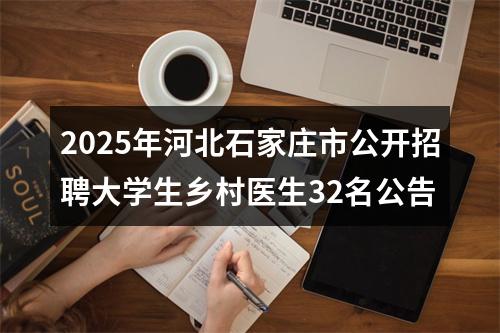 为加强石家庄市乡村医生队伍建设,提升乡村医疗服务水平,根据《事业单位人事管理条例》《河北省事业单位公开招聘工作人员暂行办法》(冀人社发〔2011〕9号)和《关于做好大学生乡村医生专项计划招聘工作的通知》(冀卫基层函〔2025〕17号)有关要求,结合我市实际,现公开招聘大学生乡村医生32名。有关事项公告如下: