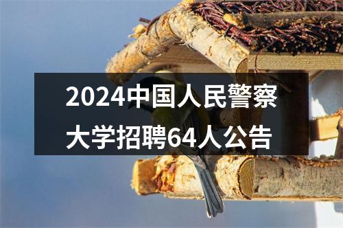 本次招聘共设置24个公开招聘职位、招聘64人,均为人民警察职位,要求学历为博士研究生。具体职位信息及资格条件详见《中国人民警察大学2024年度公开招聘计划表》(见附件)。