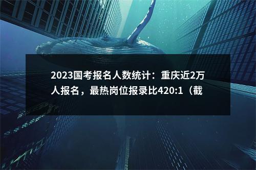 关注石家庄中公教育(sjzoffcn),掌握各类考试资讯! 【2023国考报名人数统计:重庆近2万人报名,最热岗位报录比420:1(截至31日16时】相关岗位: |