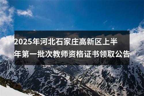 【2025年河北石家庄高新区上半年第一批次教师资格证书领取公告】相关岗位: