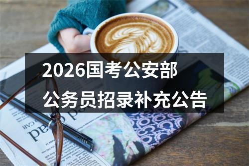 按照中央机关及其直属机构2026年度考试录用和公开遴选公务员工作部署安排,根据《人民警察法》《关于加强公安机关人民警察招录工作的意见》等法规政策规定,现就做好公安部及其直属机构2026年度公务员招录工作有关事项补充公告如下: