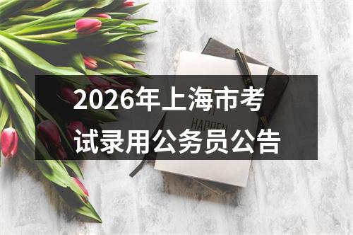 根据公务员法和《公务员录用规定》等法律法规,上海市公务员局将组织实施上海市各级机关2026年度考试录用一级主任科员及以下和其他相当职级层次公务员工作。现将有关事项公告如下: